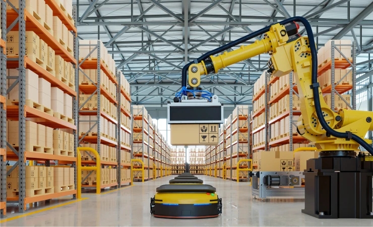 AMRs transport goods between storage, picking, packing, and dispatch zones — reducing human walking time and increasing order processing speed by up to 40%.